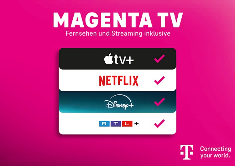 Die Telekom erweitert den MagentaTV MegaStream Tarif um einen weiteren Streaming-Dienst. Ab dem 12. November 2024 ist auch Applet TV+ dabei. Weiterhin im Tarif enthalten sind Disney+ Standard, Netflix Standard sowie RTL+ Premium.